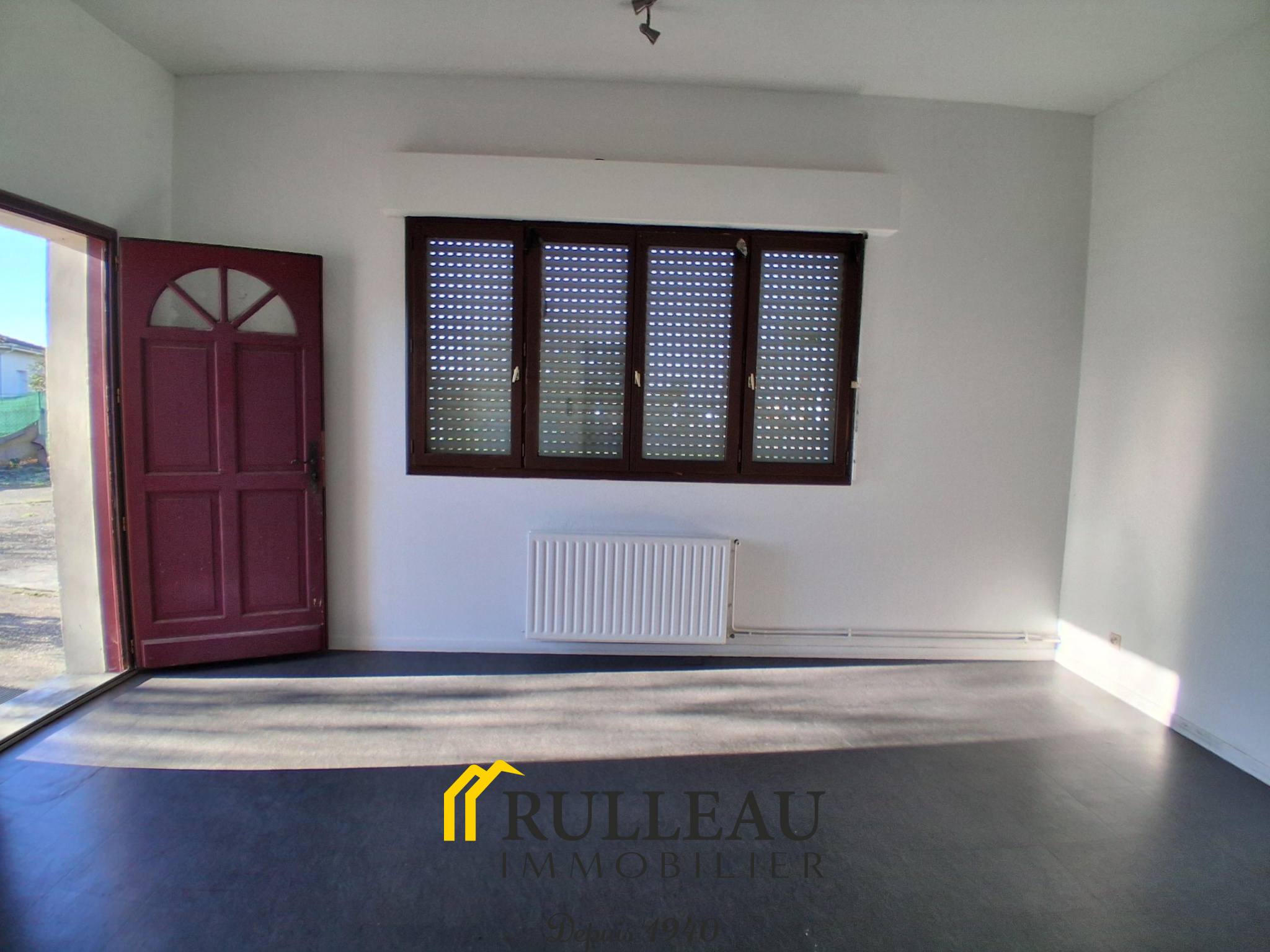 carrelage, fenêtre alu, 1 radiateur, volet bois ouverture à l'italienne