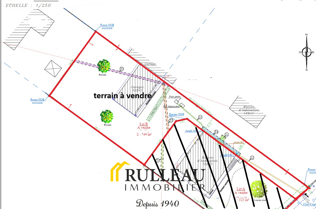 Le terrain dispose déjà de trois garages bâtis, facilement intégrables dans un projet futur ou exploitables en l’état (stationnement, stockage) ou encore à démolir.