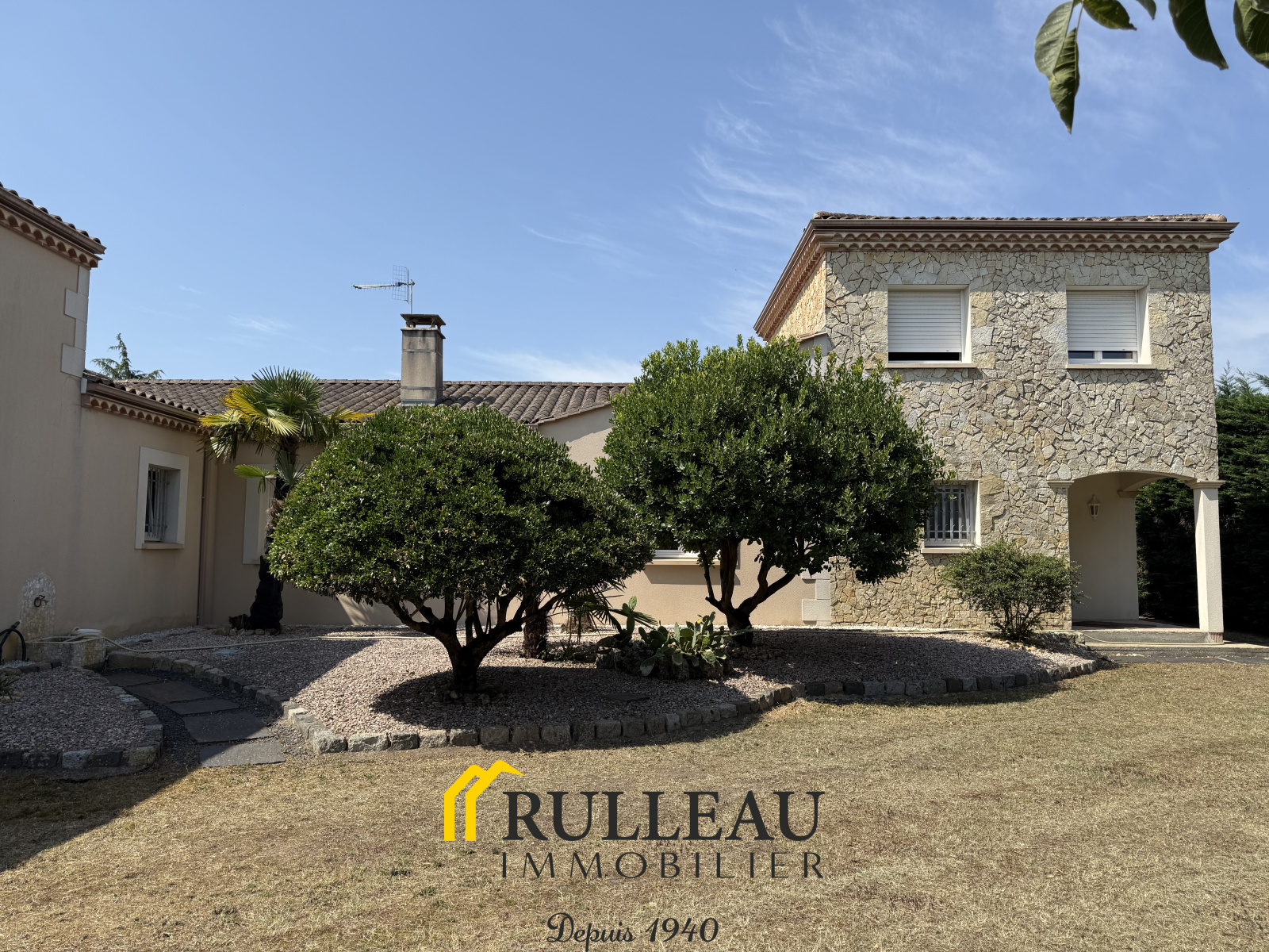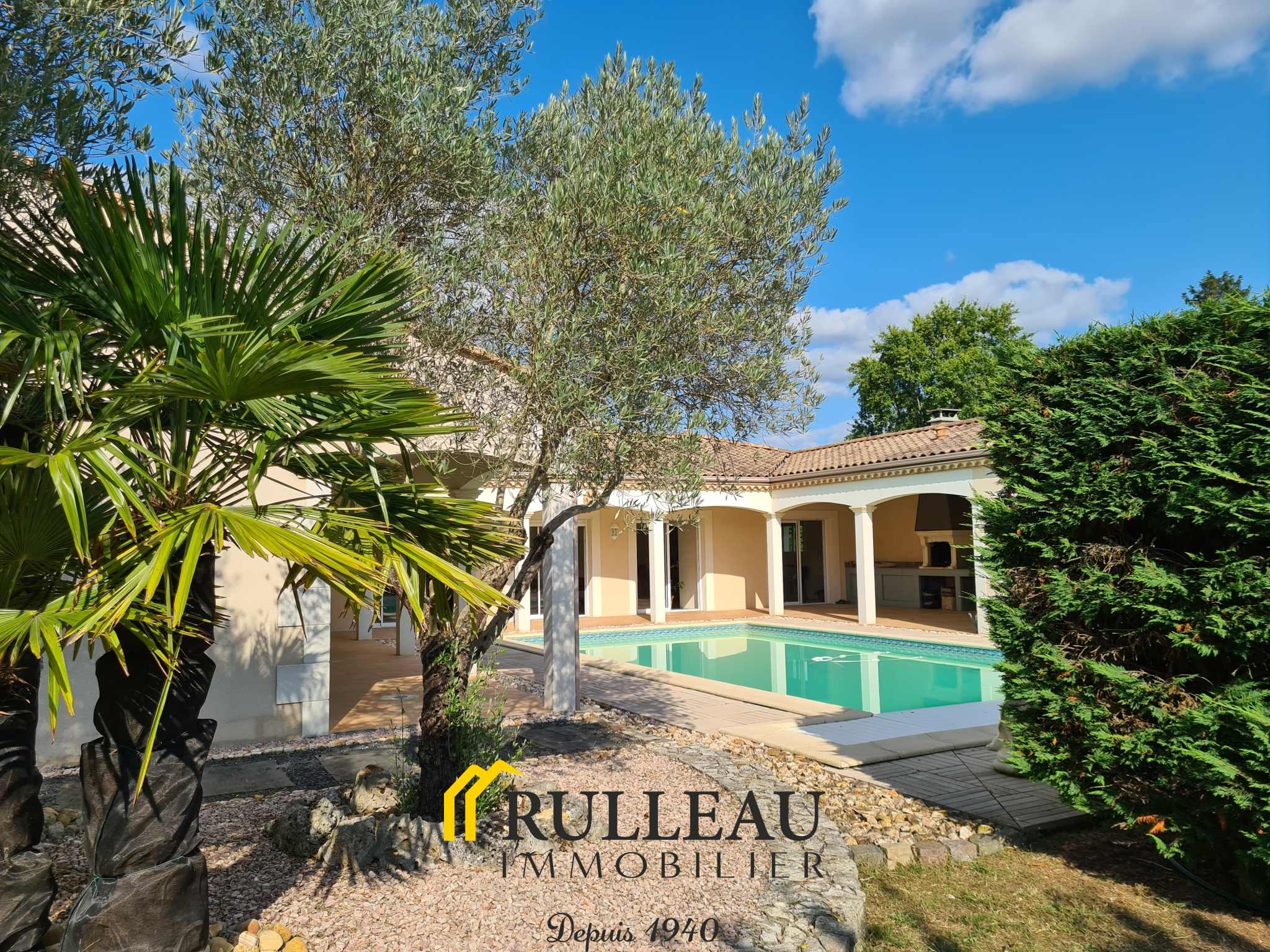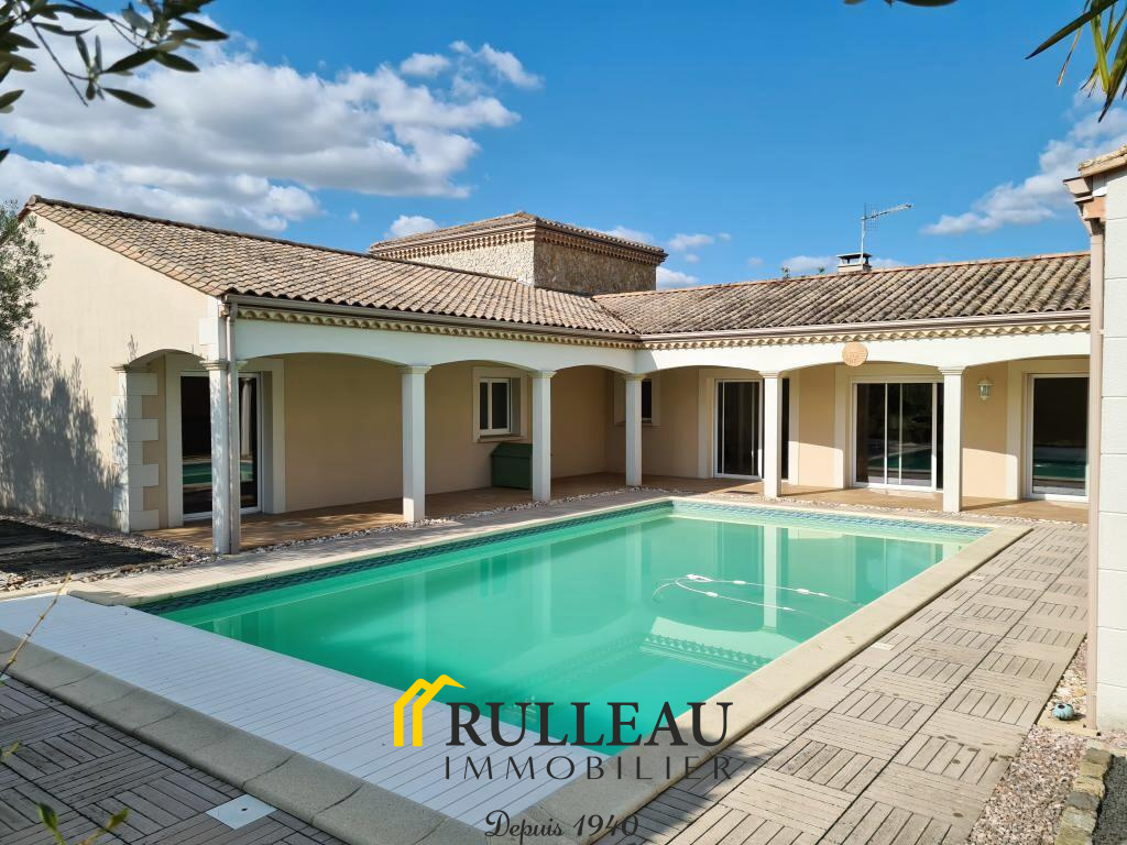 Proche écoles, bus, gare, sur terrain arboré de 2194 m² env., villa tout confort aux vastes volumes, surface habitable 227 m² env., séjour/salle à manger 63 m², cuisine équipée 38 m², ouvrant sur terrasses, arrière cuisine/cellier, 4 chambres, 2 salles d'eau, grand dressing. Chauffage au sol. Ensemble très lumineux. Construction attenante de 97 m² aménageable en habitation, actuellement à usage de garage, vastes terrasses couvertes avec barbecue, piscine maçonnée (10x5), local piscine attenant avec douche et wc.