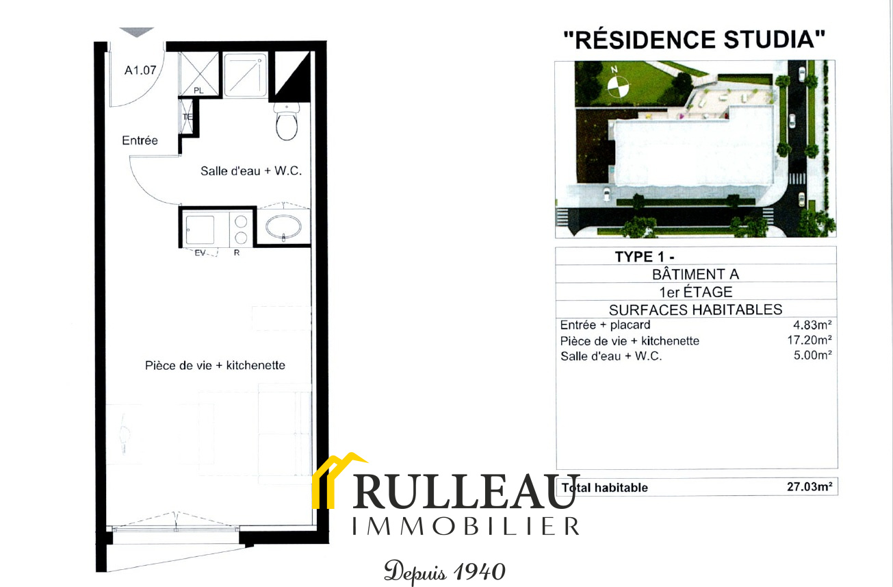 LORMONT (33310) à proximité du CC des QUATRE PAVILLONS et à 2 km de la Butinière (TRAM A) , APPARTEMENT T1 VENDU LOUE au 1 er étage (sur 5) d'une résidence de 2015. Composé d'une entrée avec placard, d'une pièce de vie avec kitchenette et d'une d'une salle d'eau avec wc. Le studio est VENDU LOUE bail de 05/2023 et génère des loyers HC de 410€ (avec parking). Charges de copropriété mensuelles 50 € pour le propriétaire et 75 € pour le locataire (eau chaude et chauffage compris), la Taxe foncière est de 740 €. La résidence propose également des prestations pratiques: chauffage et eau chaude collectifs, garage à vélo, laverie, salle de sport, local poubelles et présence d'un régisseur / gardien habitant la résidence, gage de bonne tenue des lieux. Pour de plus amples renseignements ou visites contacter : au 06 899 00 555 Gilles DIGARD agent commercial RCS BDX 503246373 AGENCE RULLEAU IMMOBILIER AMABARES